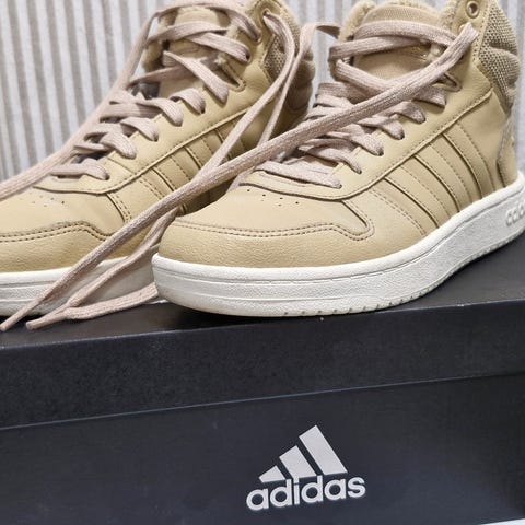 Kesän käytetyt Adidas Hoops 3.0 Mid Lifestyle Basketball Classic Vintage Shoes Tennarit koko 42. Ei naarmuja, perus kulumaa pohjissa ja tummentumia pinnassa. Kengät ovat korkeavartiset ja sopivat arkikäyttöön. Materiaalina on keinonahka ja kangas.