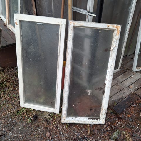 Tässä lakatut mäntypuiset ikkunat 3 kpl kolme lasiset. Sasmon ikkunat,hyvää laatua,säleverhoilla.
