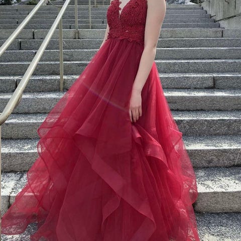 Myyntiin kerran käytetty upea vanhojentanssimekko, koko XS. Sopii 34-36/XS-S kokoa käyttävälle. Upea vanhan roosan sävy, jossa kultakimalletta. Takana kaunis nyöritys. Mukaan vannehame. Sopiva n. 170cm pituiselle ilman korkoja. Helppo myös lyhentää. Nyörityksellä saa säädettyä yläosan istuvuutta.