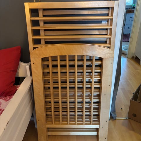 Myydään vanha kunnostettu keinuva lasten pinnasänky.Käsitelty mehiläisvahalla.Vain nouto Lapinlahdelta.