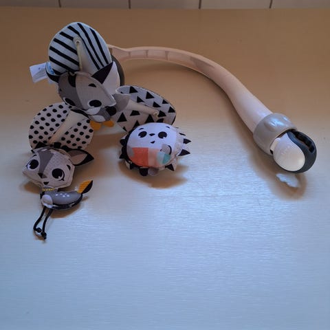 Kuvan ihana yhden vauvan ensikuukaudet ilostuttanut soiva mobile