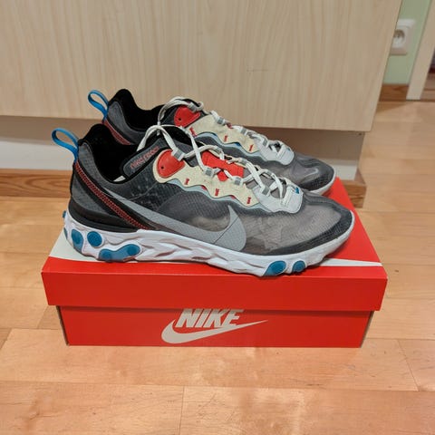 Kaksi kertaa käytetyt, kuin uudet Nike React Iangat. Väri vaaleanruskea/musta. Ulkopohja Niken juoksukengistä tuttua, todella mukavan pehmeää React-materiaalia.