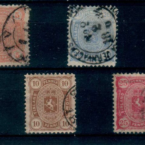 Suomi 1875 Coat of Arms 32 Pennia postimerkki, Kööpenhaminan painatus, hammastus, väri punainen.