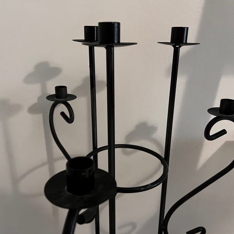 2 lattiakynttilänjalkaa. Metallia, valkoinen. Hinta: 45 e / 2 kpl. Korkeus 63cm