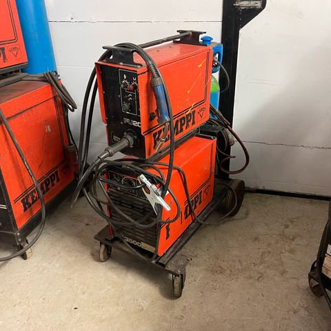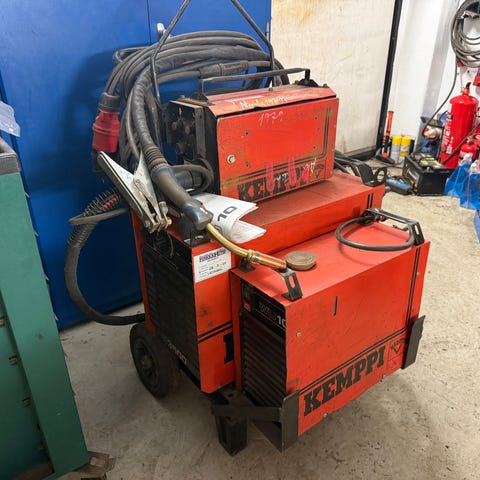 Siistikuntoinen nestejäähdytetty synerginen Kempin hitsauskonepaketti valmiina töihin.