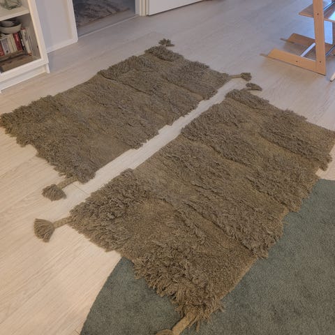 Myydään neljä hyväkuntoista harmaasävyistä mattoa.