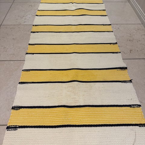 Itse kudottu hempeä räsymatto. Vaal.sini-lilasävyinen.