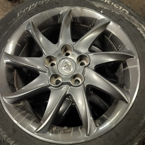 Toyota Avensiksen vanteilla. Kulutuspintaa 8,47mm. Tavallista runsaampi nastoitus, pienet nastat. Valmistettu 26viikko vuonna 2024, kuten kuva kertoo. Renkaiden sijoituspaikat merkitty ventiilin muoviläpykkään.