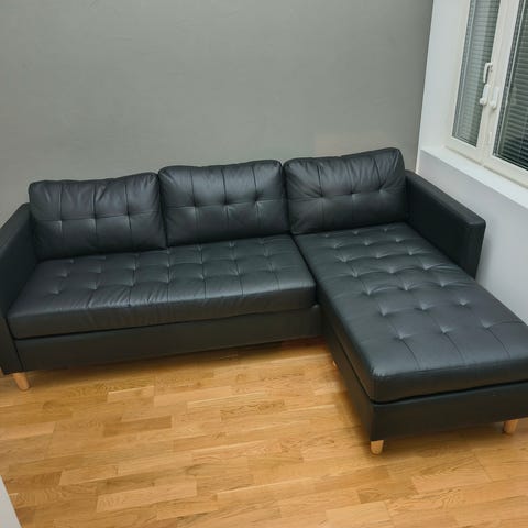 Sohvassa on jämäkkä puurunko, Nozag-jouset, molemmin puolin verhoillut istuin- ja selkänojatyynyt (käännettävät).