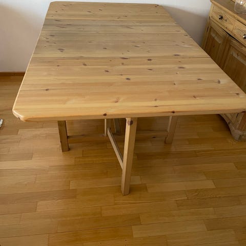 Myydään ruokapöytä ja 6 tuolia. Pöytään kuuluu jatko pala. Leveys jatkopalan kanssa 197cm