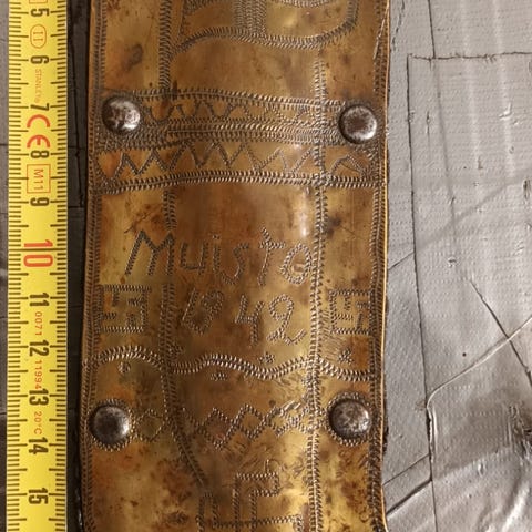 Kuparipannu, jossa pitkä metalli kahva ja pieni sivukahva. Pannun pohja ja sisäpinta ovat kuparia. 1940-luvulta.Pannun kahvat ovat metallia ja mahdollistavat helpon käsittelyn.