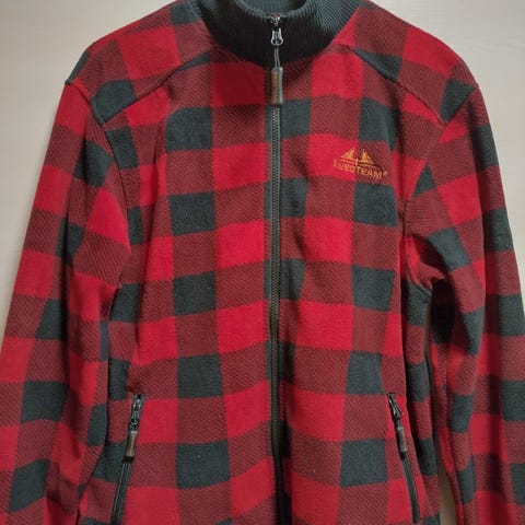 Uudenveroinen Swedteam paitatakki, ulkopuoli flanelityyppistä kangasta, sisällä teddyvuori, nepparikiinnitys. Takissa sivutaskut sekä rintatasku, sisällä vetoketjullinen povitasku.