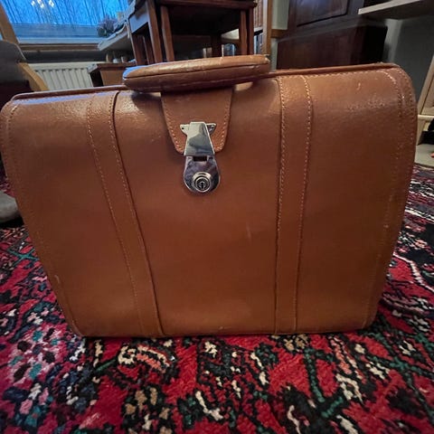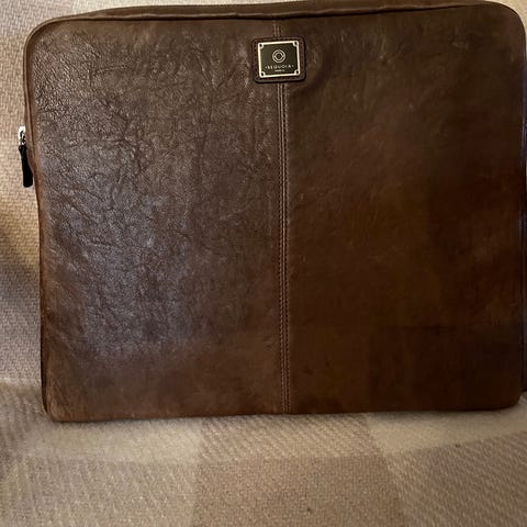 Salkku joka sopii myös kannettavalle, sisällä lokeroita. Vetoketjulla saa suljettua niin pysyy tavarat suojassa.