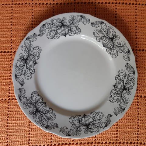Arabia Lautanen, jossa on kukka-aiheinen koristekuvio. Valmistettu kestävästä keramiikasta, sopii astiastoksi keittiöön tai ruokailuun.