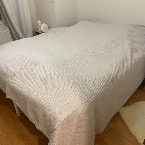Uusi (kuvaan otettu esille) Punottu luonnonvalkoinen ylellisen pehmeä torkkupeitto sopii tyylikkäästi sängyn tai sohvan päälle.