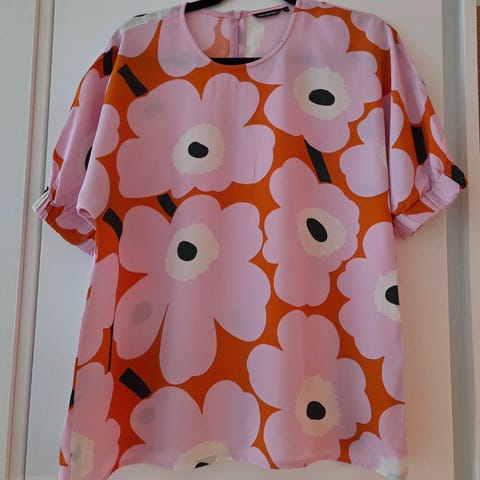 Marimekon Pokkari Unikko -paita. Koko 36. Vastaa kokoa S. Kuin uusi. Säilytyksen jäljiltä vähän ryppyä.