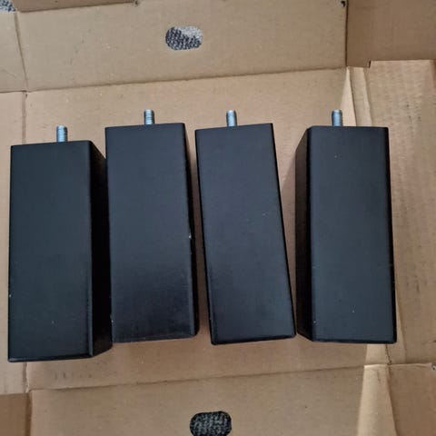 Mustat sängynjalat, 4 kpl. Korkeus 15cm, neliöt sivu 5cm.