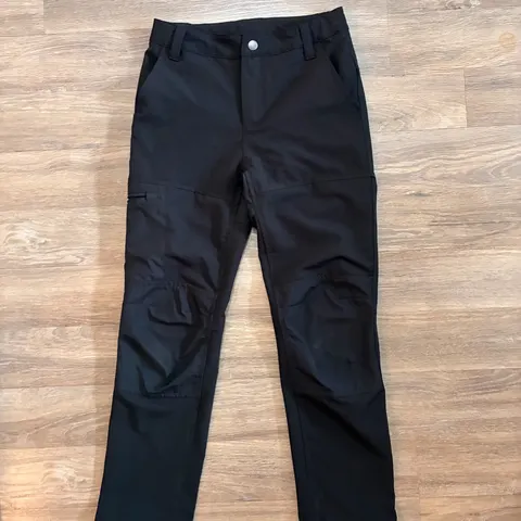 Lähes käyttämättömäksi jääneet retkeilyhousut, tummat osat joustavia, joten helppo esimerkiksi kyykistyä. Toinen 130 koon ja toinen 140 koon housut. Hinta 5e per housu, vain noudolla Turku/Yli-Maaria