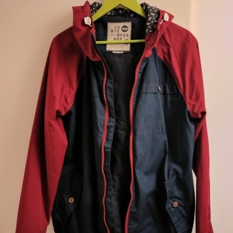 Zara petroolin sininen takki miehille, koko L. Takki on valmistettu kestävistä materiaaleista ja sopii ulkoilukäyttöön. Siinä on vetoketjulliset taskut ja kevyt rakenne, joka tarjoaa mukavuutta ja suojaa viileämmissä olosuhteissa.