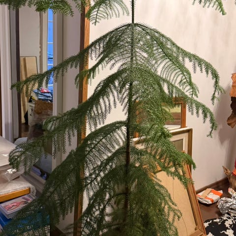 Tämä liuska-aralia on arviolta hiukan yli 3 metriä korkea, vaatii siis korkean huoneen. Aralia on hyvälaatuisessa altakasteluruukussa. (Maksoi muutama vuosi sitten 120€). Ruukussa on 2 kappaletta kasveja, joista vanhempi on ollut minulla 41 vuotta ja nuorempikin yli 20 vuotta. Eivät vaan tulevaisuudessa enää mahdu meille, valitettavasti... Mukaan saa myös pyörillä kulkevan alustan siirtelyä helpottamaan.