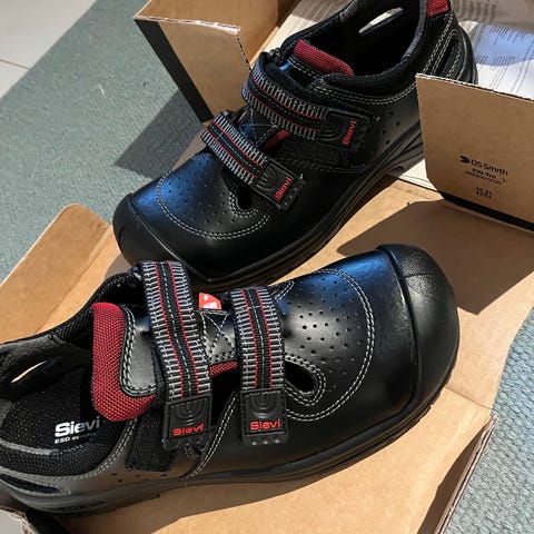 Turvakengät olisi käyttöä vailla. Nämä ostettiin remonttikurssia varten, kun vaatimuksena oli asianmukainen turvavarustus. Käyttökertoja on kaikki kuusi. Niissä hommissa ei kuitenkaan kengätkään pysy ykköskunnossa, joten pieniä naarmuja löytyy, mutta käyttökunnoltaan nämä ei paljoa häpeä uusista. Ei haise hiki.