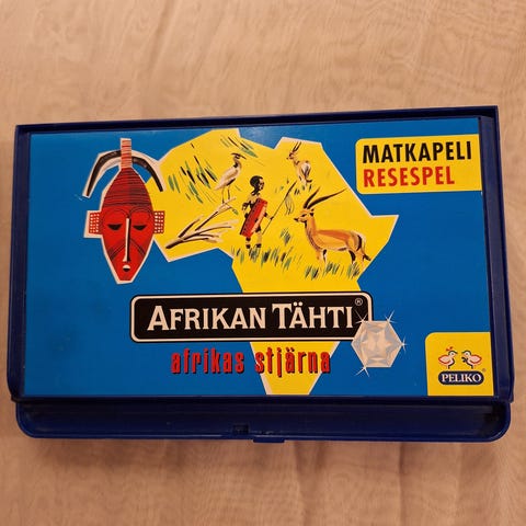 Myydään Afrikan tähti matkapeli. Napit ovat magneettisia ja pysyvät hyvin paikoillaan esim. autoillessa. Ja tottakai kaikki tarvikkeet pelissä tallessa. Metsä Group erikoisversio, eli samanlaisella firman tarralla et vastaavaa kaupasta löydä.