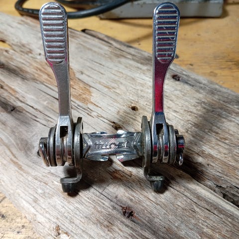 Myydään uudet retro huret merkkiset polkupyörän vaihteet. Huret pantakiinnitys kitkavaihtajavivut ja vanha Huret vaihteensiirtäjä.