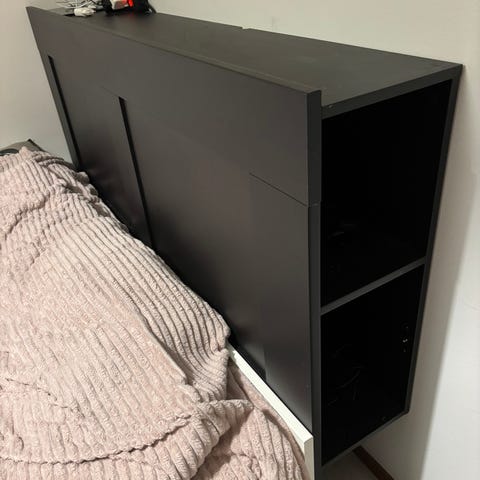 Osittain säädettävät lokerot molemmissa reunoissa toimivat kätevästi yöpöytinä.
