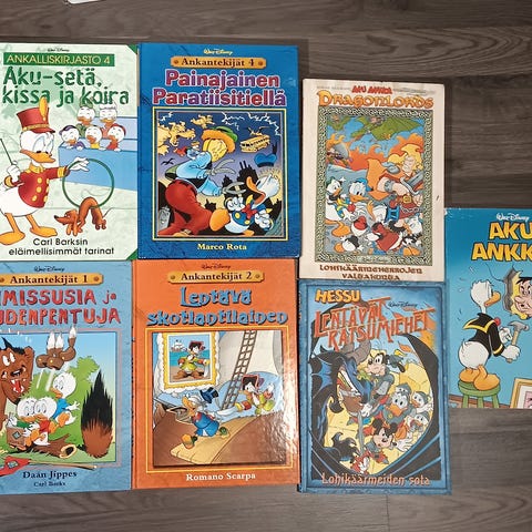 3 kovakantista aku ankka kirjaa, kuin uusia ei ole koskaan luettu. Ykköskyky kirjan taka kannessa on pieniä jälkiä näkyy kuvassa. Hp yht. 20e. Nouto vantaa.