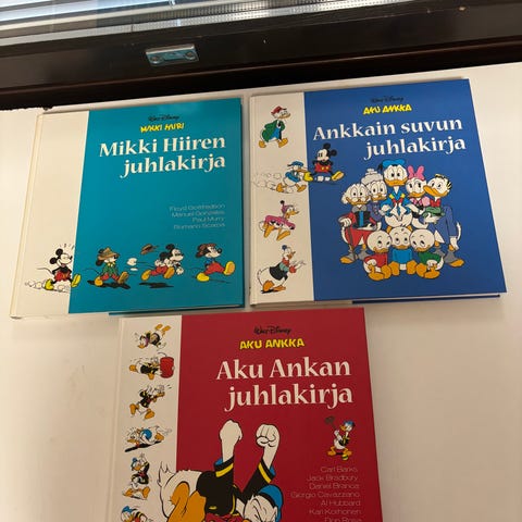 3 kovakantista aku ankka kirjaa, kuin uusia ei ole koskaan luettu. Ykköskyky kirjan taka kannessa on pieniä jälkiä näkyy kuvassa. Hp yht. 15e. Nouto vantaa.