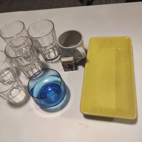 Kauniit timanttihiotut kuviot. Ohutta lasia. Korkeus 15 cm ja halkaisija 7.5 cm. 6 kpl