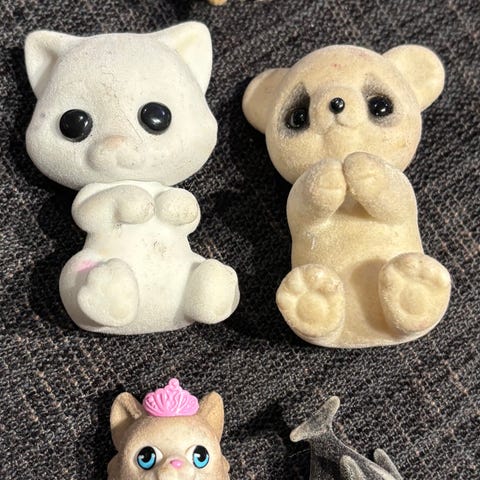 Karvaisia eläin figuureita, kani, koira, kissa, jänis, varsa, karhu. 5,- kpl tai kaikki 30,-