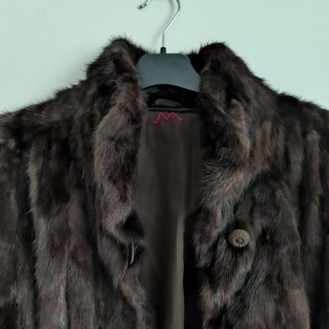 Ketun turkistakki, viininpunainen, 100-105 cm pitkä, polvipituinen lyhyille ihmisille, polven yläpuolelle pitkille ihmisille, sopii jopa 140 kg painaville, erittäin pehmeä, 160 euroa