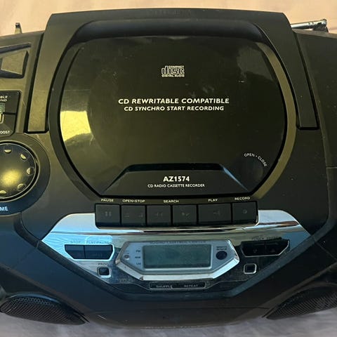 Philips pieni ja näppärä verkkovirralla toimiva matkaradio, jossa FM- ja AM-taajuudet. Toimii hyvin, selkeä ääni, ulkoisesti kunnoltaan uuden veroinen. Väri musta. Sisältää kantokahvan ja telescopic-antennin. Koko n. 20 X 12 cm.