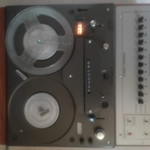 Kuvan kelanauhuri, kiekot lähti pyörimään ensin, mutta ilmeisesti vanha vetohihna napsahti poikki, katsoin netistä että noitaa tilattua tai sovittaa sopivan kokoinen O-rengas tilalle.
