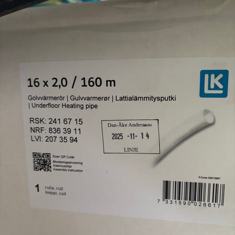 Lattialämmitysputki 20x2mm