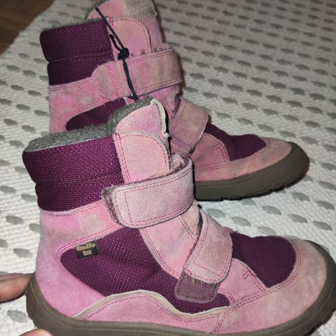 Froddo punaiset lasten talvikengät koko 32, ostettu uutena (87€) ja lapsi käyttänyt niitä yhden talven muiden kenkien kanssa. Kengät ovat lähes uudet lukuun ottamatta pientä kulumaa pohjassa kantapään alapuolella ryhdin vuoksi. Katso kuvat pohjista. Ei vikoja sisällä.