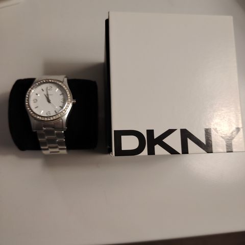 Tehtaan pakkauksessa oleva käyttämätön DKNY -merkkinen naisten kello ja samalla koru. Mukaan kuuluu kellolaatikko, ohjekirja, jatkopala ja musta pieni tyyny. Hintalapussa hinta 229 € ollut ostettaessa. Uusi paristo vaihdettu. Kello hyvin toimiva.