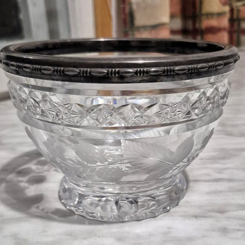 kastemalja tarjoilumalja hedelmäkulho tarjoilukulho kaste juhlakattaus Finnish design Crystal kristalli Riihimäen lasitehdas mid Century modern