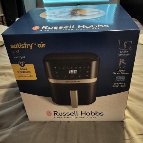 Uusi Russell Hobbs Airfryer. On täysin käyttämätön, ei ole otettu edes laatikosta pois. Pahvilaatikko ainoastaan vähän kulunut kulmista säilytyksessä.