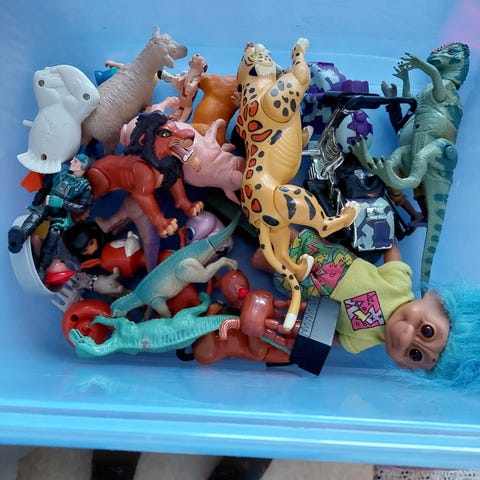 Myydään kolme pientä avattavaa taloa. Yhdessä mukana asukas, toisessa pikku koira ja kolmas on tyhjillään.