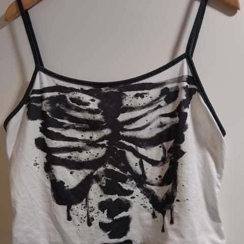 Musta hiaton puuvilla toppi pitsi reuna luuranko kädet koristeena edessä