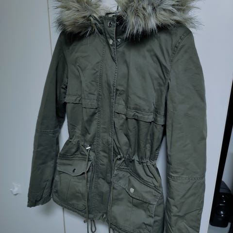 Punainen talvitakki, koko 32/xxs. Vasemman puolen hihassa pientä likaa ei lähde pois.