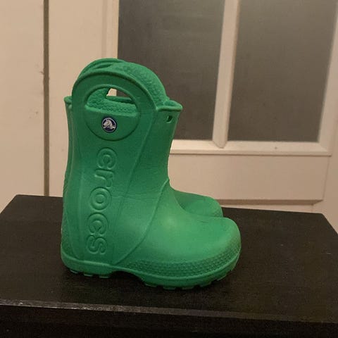 Myydään siistit ja kevyet crocs merkkiset kumisaappaat, sisämitta n. 12cm. Helpot vetää jalkaan.