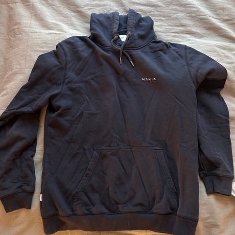 Makia musta huppari koko S. Valmistettu orgaanisesta puuvillasta. Miesten malli, jossa huppu ja etutasku. Takana painatus.