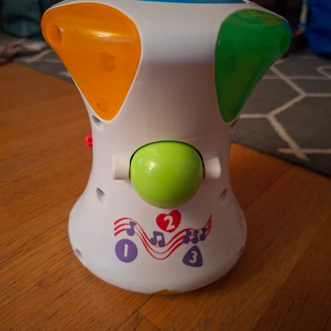 Hauska ja lasta stimuloiva aktiviteettilelu.Crawl After on hauska musikaalinen aktiviteettilelu. Rumpu on monipuolinen, sillä siinä on kaksi erilaista toimintoa kolmella eri leikkiasetuksella. Sillä voi luoda omia melodioita musiikkiasetuksen avulla ja rytmiasetus aktivoi erilaisia rytmejä sekä valoja. Lelua voi vierittää eteenpäin ja lapsi voi kontata sen perässä. Lelu on hauska ja sen parissa lapsi oppii uutta ja kehittyy.