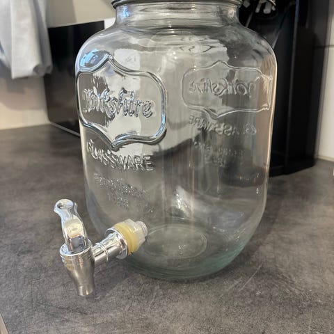 Halkaisija 22cm. Korkeus noin 20cm kahvan kanssa.