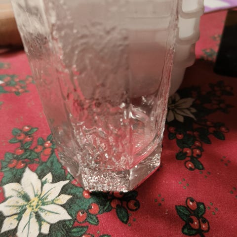 Neljä Timo Sarpanevan suunnittelemaa juomalasia, lähes käyttämättömät, väri kirkas, korkeus 8,5 cm, halkaisija 7,0 cm.