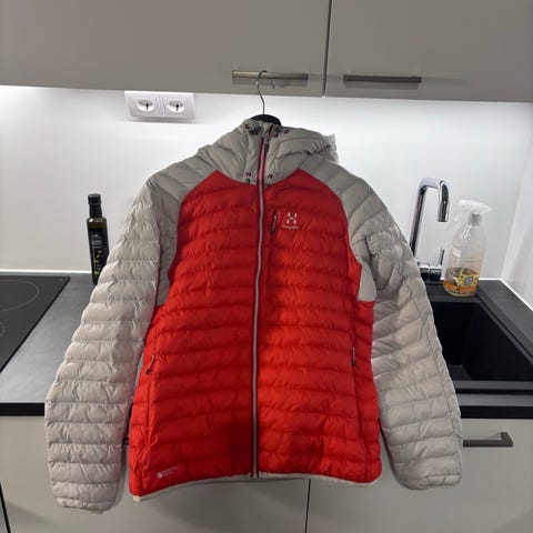 Pituus sopiva, ei liian lyhyt ja peittää takapuolen sopivasti, sopii siis tuuleen ja tuiskuun. Ei päästä loskasadetta läpi ja pakkasellakin tarkenee. Olkavarsissa ja olkapäissä tuulenpitävä vahva kangas.