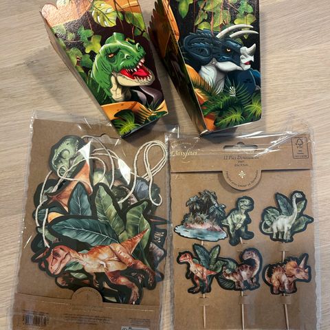 Käyttämätön setti dino kakkukoristeet. Kakkukuva otettu netistä. Myynnissä täysin käyttämätön setti.